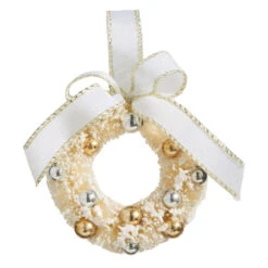 Raz 5.5″ Bottle Brush Ivory And Gold Wreath Christmas Ornament 4319150