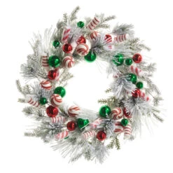 Raz 24″ Frosted Pine And Peppermint Christmas Wreath W4506698