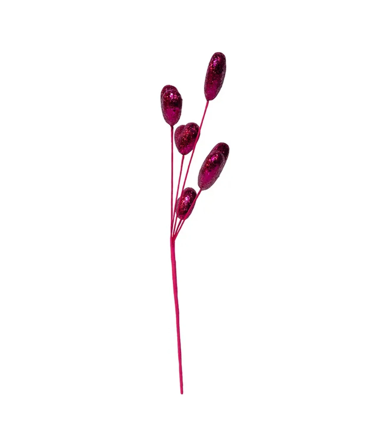 Add a little love to your Christmas tree with this adorable spray! It features bold and bright pink glittered hearts on a pink paper covered wire! Perfect to use in any pink themed trees or for Valentines Day Decor! Made by Kurt Adler. Made of polyester, paper, and iron. Dimensions: 19″. Item #: C9598