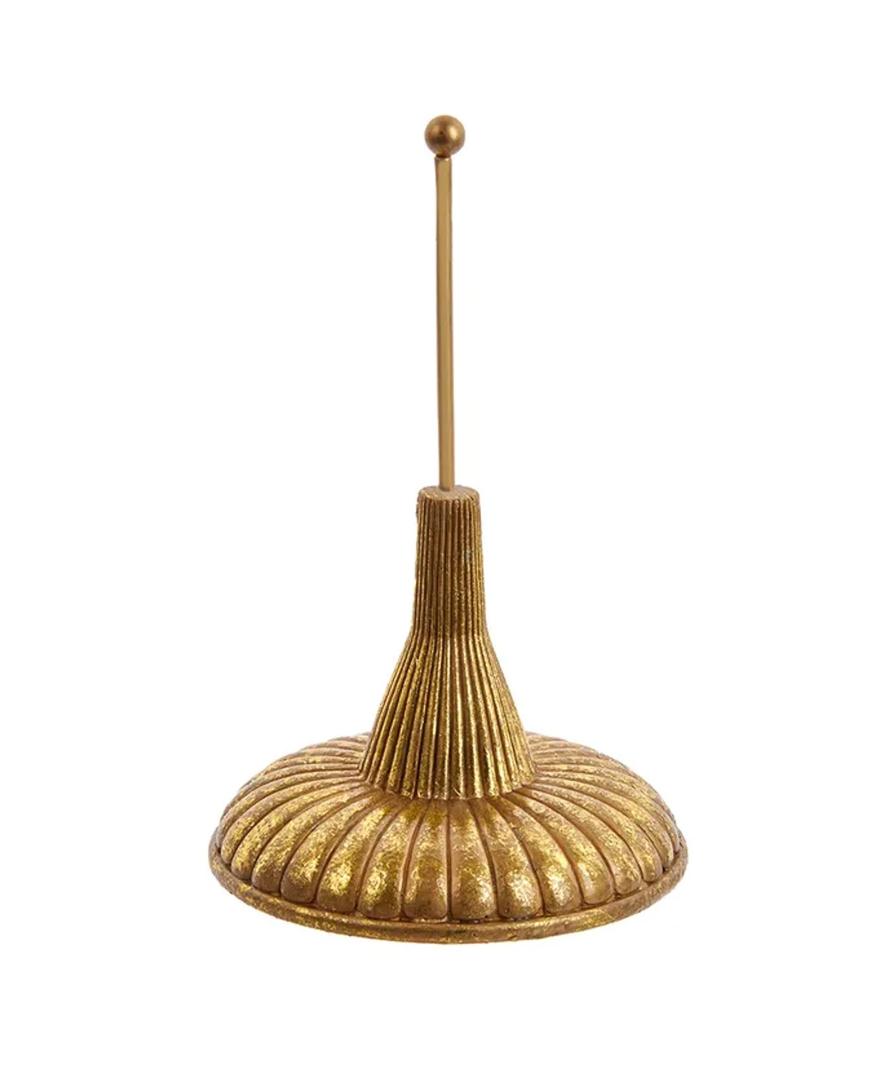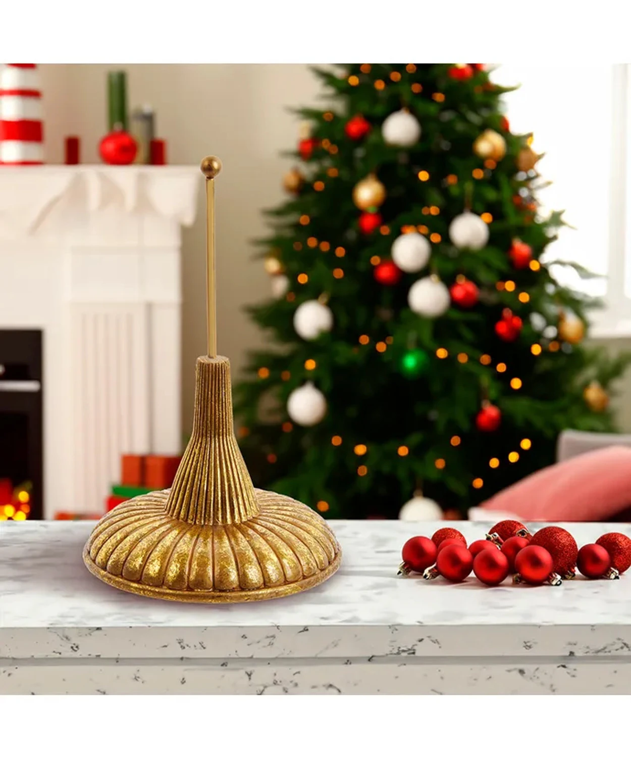 Display your favorite finial tree topper with this pretty stand! It is made of a brilliant gold with a ribbed design and a pole to hold up the tree topper! Made by Kurt Adler. Made of metal. Dimensions: 7″. Item #: D4412