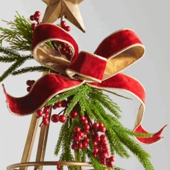 Celebrate the season with this classic red and gold wired ribbon, a timeless duo that complements any holiday decor. One side features a vibrant red, while the other shimmers with a glimmering gold finish. Perfect for crafting elegant bows, trimming trees, wreaths, or garlands with traditional festive flair. Made by Raz Imports. Made of polyester. Dimensions: 1″ x 10 yards. Item #: R4552156