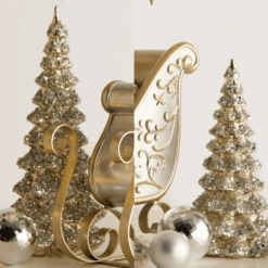 Sparkling silver trees covered in shimmering silver glitter and sequins! They are perfect to pair with houses along your mantle or on your coffee table! Sold as a set of 2. Made by Raz Imports. Made of glass. Dimensions: 5.5″D X 13″H; 5″D X 10″H. Item #: 4524504