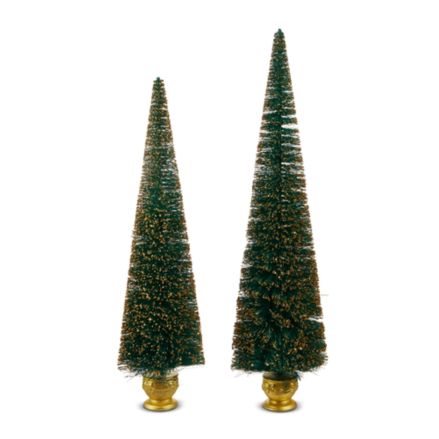 Sparkle and shine as bright as you can this Christmas with this darling pair of trees! Featuring a deep teal blue color dusted with gold glitter in a small urn base! Pair with your Christmas houses along the mantle or use as a center piece on your table setting! Sold as a set of 2. Made by Raz Imports. Made of sisal and resin. Dimensions: 4″D X 17″H; 4″D X 14.75″H. Item #: 4516220