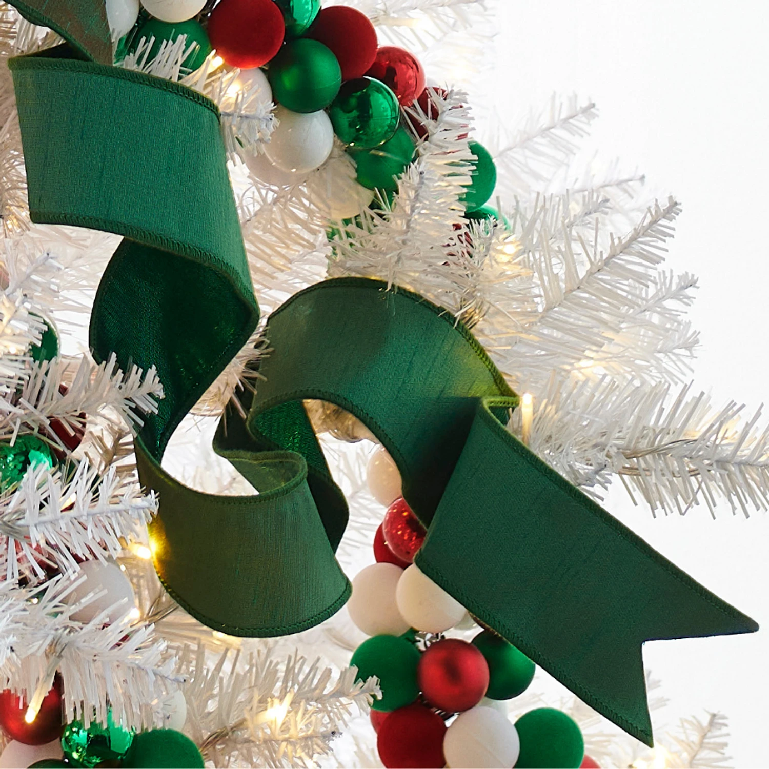 Bright green ribbon is sure to make a statement this Christmas! It features a wire detail to hold shape in any loop or bow you tie it into! Made by Raz Imports. Made of polyester. Dimensions: 2.5″ x 10 yards. Item #: R4527853