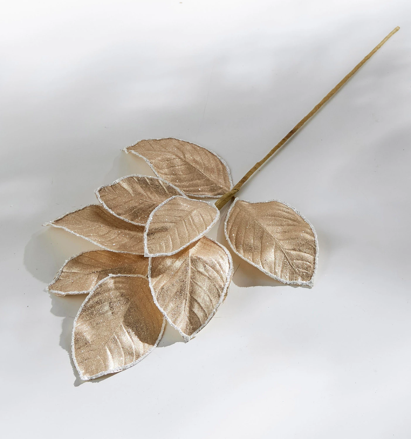 This stunning magnolia leaf spray features wide gold leaves trimmed with white glitter that looks like snow! Adding these into your decor will create a unique texture in your tree, wreath, or garland for a fun look! Made by Raz Imports. Made of polyester. Dimensions: 27″. Item #: F4206770