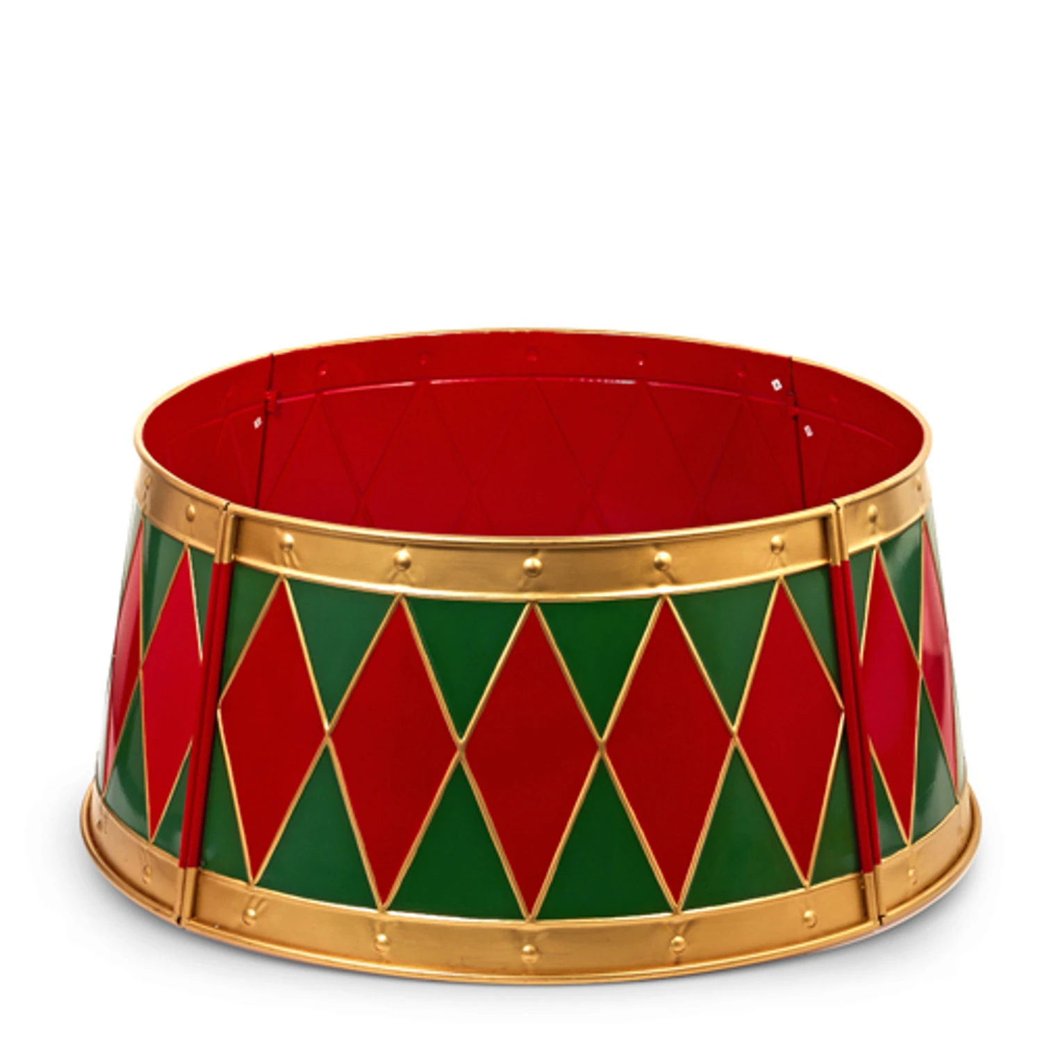 Create a lovely look this Christmas with this fabulous tree collar! It features red, gold, and green in a diamond pattern that resembles a nutcrackers drum! It is perfect to hide those unsightly tree bases! Made by Raz Imports. Made of metal. Dimensions: 36″ D X 16″ H. Item #: 4525929