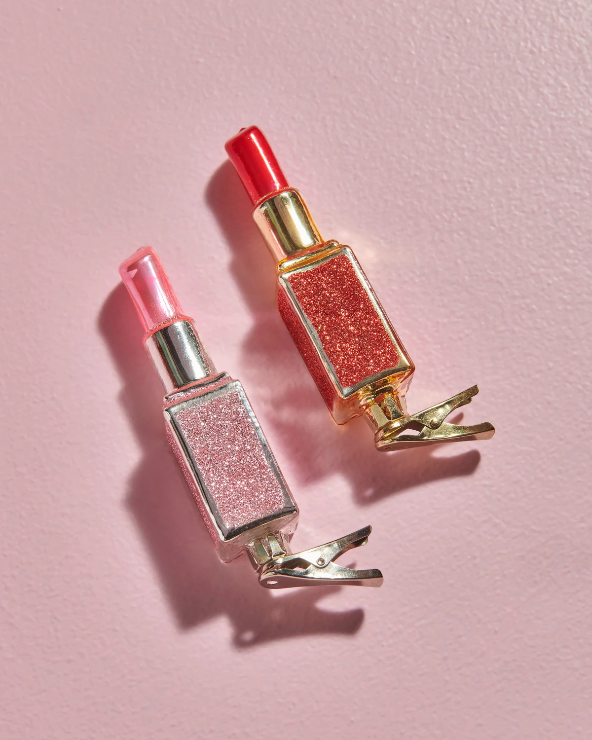 Pucker up! Every baddie needs these gorgeous glittered lipsticks! The set includes a bright red in a golden tube, or a light pink in a silver tube. The clip on base makes it easy to place anywhere on a tree, wreath or garland! Set of 2. Made by Raz Imports. Made of glass. Dimensions: 1.75″L X 1″W X 4.75″H. Item #: 4552955Â
