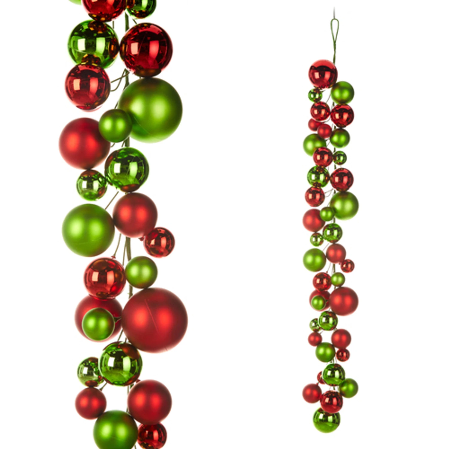 Add this gorgeous garland to your Christmas tree or mantle for a fun look! It features bright red and lime green ball ornaments of different sizes! Made by Raz Imports. Made of plastic. Dimensions: 4′. Item #: G4332724