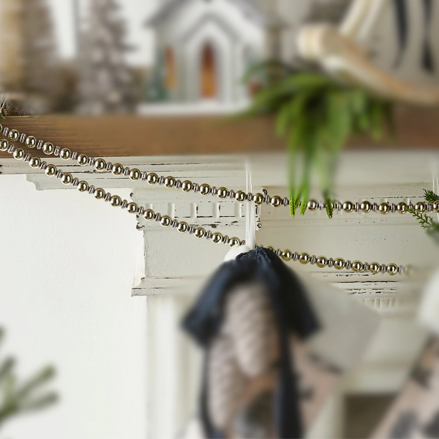 Silver and gold beads shine bright strung together along to create a classic beaded Christmas tree garland! Wrap through your tree or on your favorite garland! Made by Rz Imports. Made of plastic. Dimensions: 6′ long. Item #: G4513610