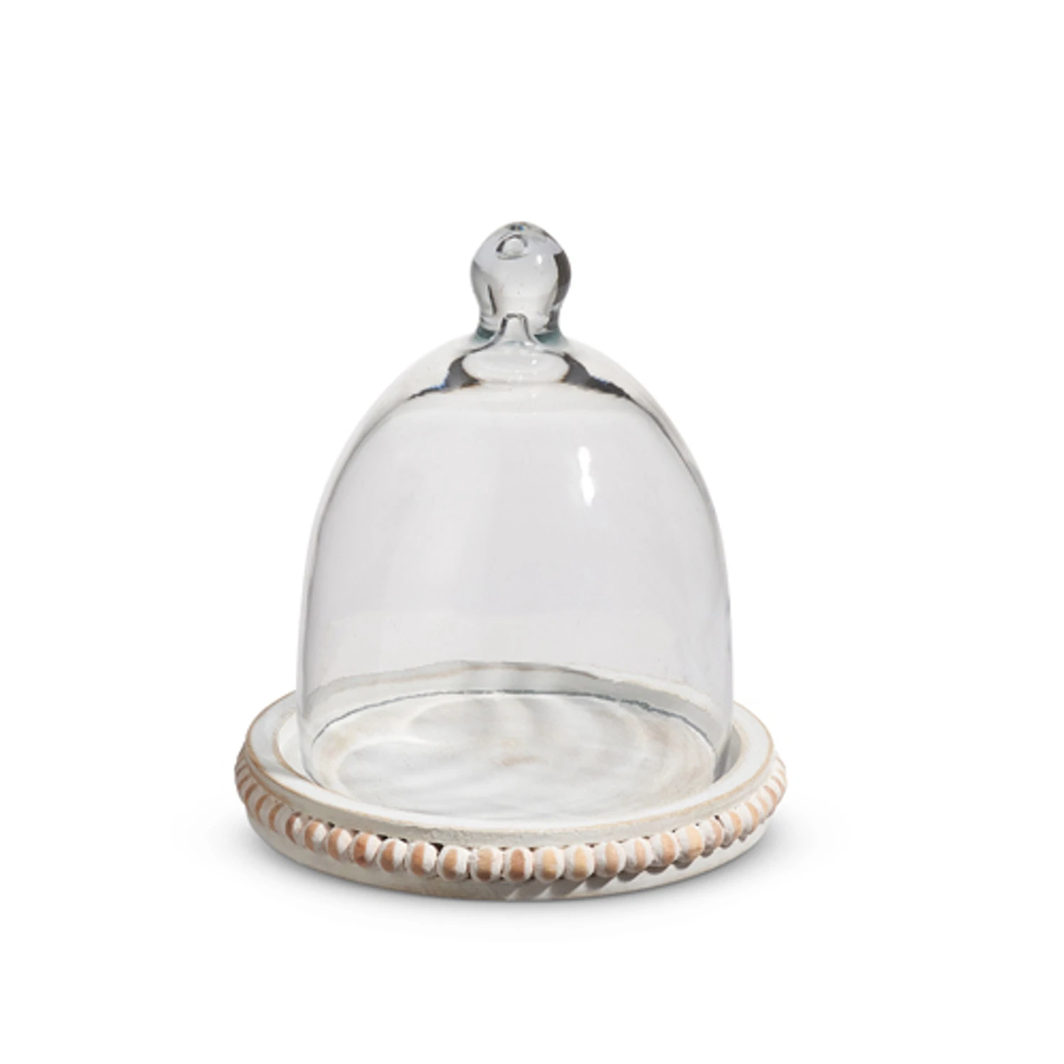 Put the cutest Christmas display easily with this adorable piece! It features a wooden base dotted with small wooden beads and a clear glass cloche to fill with a small house or figure and some snow or stuff with faux orange slices! Made by Raz Imports. Made of wood and glass. Dimensions: 6.5″ D X 7″ H. Item #: 4424405