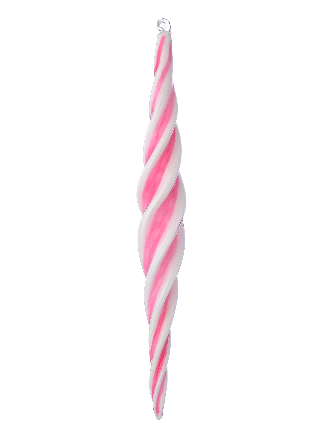 Bright pink and white swirls are swirled together to create a perfectly pink finial ornament! This will look adorable dangling off the outer branches of your Christmas tree! Made by Regency International. Made of glass. Dimensions: 12″. Item #: MTX74663